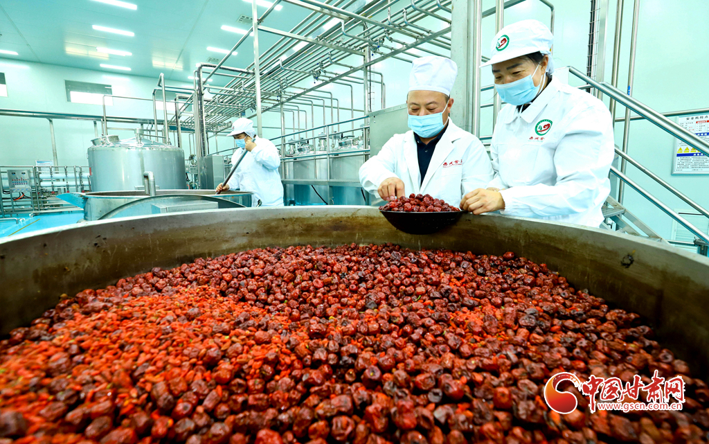 11月19日,張掖市臨澤縣一家食品企業(yè)的紅棗數(shù)字化車間里,全自動(dòng)飲料生產(chǎn)線高效運(yùn)轉(zhuǎn),每日可產(chǎn)出紅棗枸杞營養(yǎng)飲料、棗夾核桃、棗片等休閑食品十余噸,供應(yīng)青海、新疆、內(nèi)蒙古、寧夏等地市場(chǎng)。