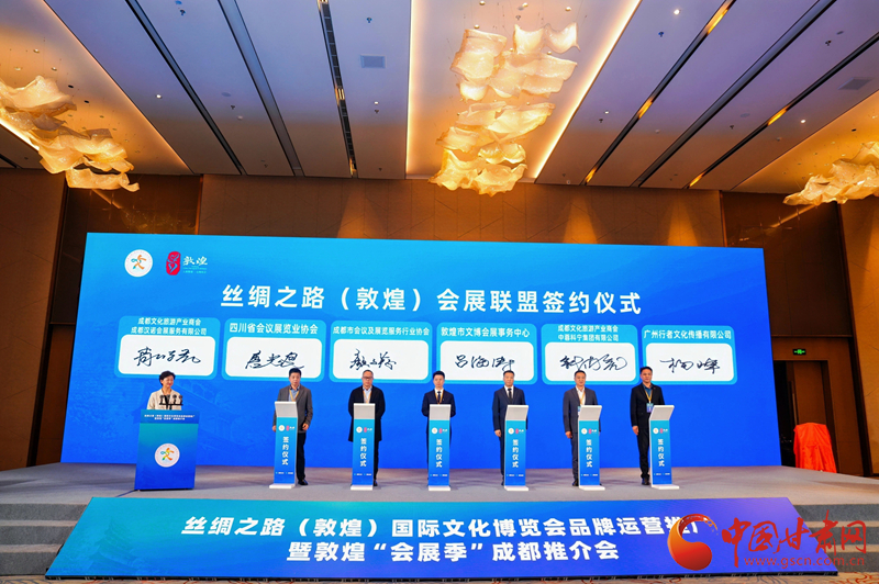 簽約儀式后,還舉行了絲綢之路(敦煌)會(huì)展聯(lián)盟(成都)推廣中心揭牌儀式,標(biāo)志著敦煌會(huì)展在成都及周邊地區(qū)推廣正式開啟,兩地會(huì)展合作進(jìn)入常態(tài)化、機(jī)制化新階段。