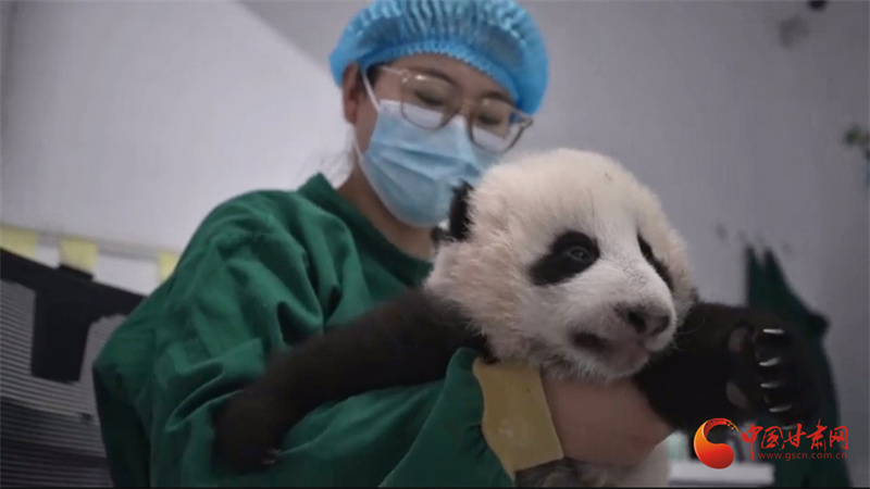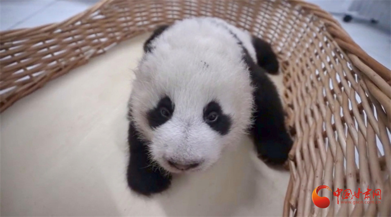 甘肅首只人工繁育熊貓“曼蘭仔”滿百天 體重增至5.5公斤