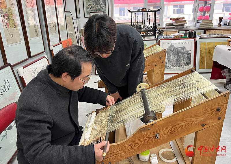 莊浪泥金紙織畫(huà),是一門(mén)融合書(shū)畫(huà)筆墨與手工編織的綜合藝術(shù)。作為省級(jí)非遺項(xiàng)目,其制作需歷經(jīng)六十多道繁復(fù)工序。完成的畫(huà)作層次清晰、經(jīng)緯分明,猶如隔紗賞景,霧里看花,以獨(dú)特韻味穿越百年時(shí)光,至今熠熠生輝。