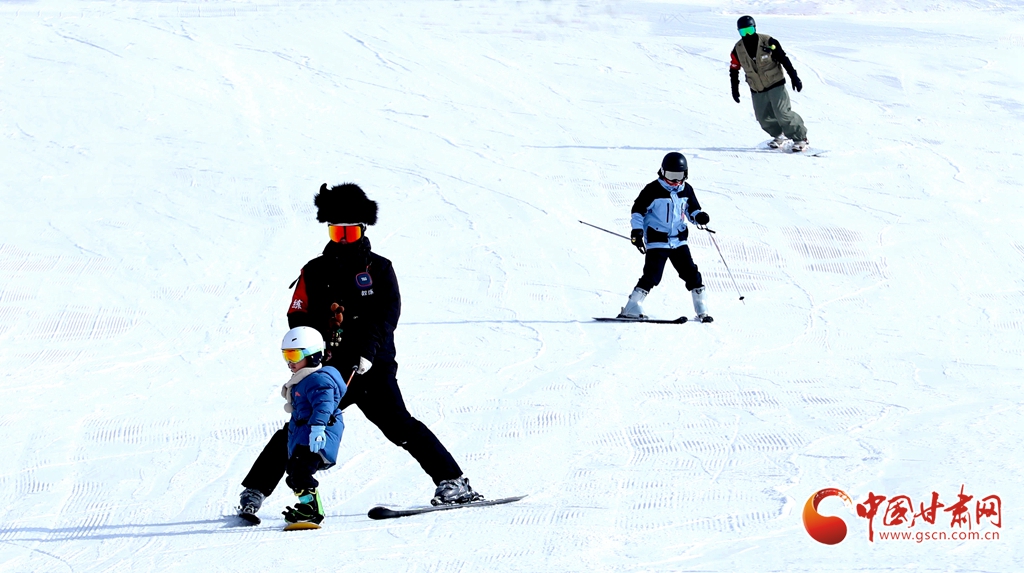 1月24日,在張掖肅南裕固族自治縣的康樂草原祁連山滑雪場,冰雪愛好者和游客攜孩子一同迎風(fēng)馳雪,樂享冰雪運動的激情。他們在運動中強健體魄、磨煉意志,同時迎接即將到來的新春。