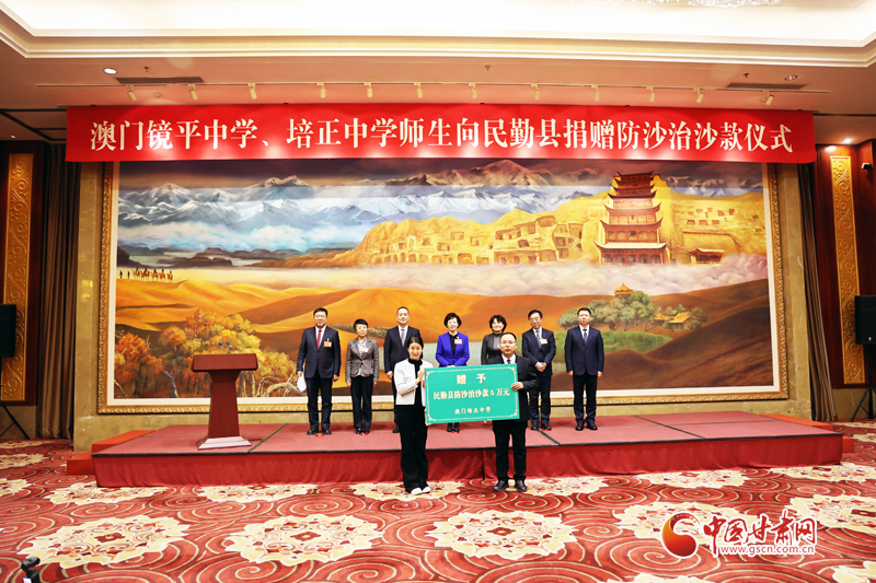 中國甘肅網(wǎng)1月27日訊(西北角·中國甘肅網(wǎng)記者 張慧雅 宋芳科 孫珩力 黃宛悠)1月27日,澳門鏡平中學與培正中學師生向甘肅民勤縣捐贈防沙治沙款儀式在蘭州舉行。此次兩所學校聯(lián)合捐贈防沙治沙款共20.1萬元,延續(xù)了隴澳共護綠洲的愛心接力。