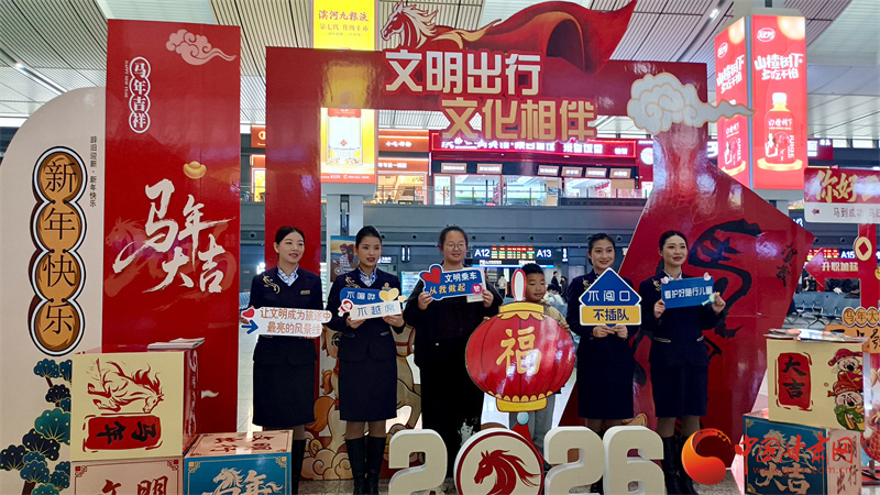中國甘肅網(wǎng)2月2日訊(西北角·中國甘肅網(wǎng)記者 宋芳科)2月2日,2026年鐵路春運(yùn)大幕正式拉開。為營造平安、有序、溫馨的出行環(huán)境,2月2日,蘭州鐵路公安處聯(lián)合國鐵蘭州局在蘭州西站舉辦了以“平安春運(yùn)、有序春運(yùn)、溫馨春運(yùn),讓旅客體驗(yàn)更美好”為主題的春運(yùn)首日宣傳活動?;顒油ㄟ^文藝展演、安全宣傳、法律援助與暖心服務(wù)等舉措,全面展現(xiàn)了蘭州鐵路部門護(hù)航春運(yùn)的堅(jiān)定決心與有力舉措。