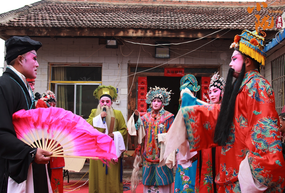 民居門(mén)口的舞臺(tái)上,多位扮相精致的演員依次亮相,或持扇或執(zhí)巾,唱腔婉轉(zhuǎn)、身段靈動(dòng)。臺(tái)下村民圍得水泄不通,不少人舉著手機(jī)定格精彩瞬間,伴奏的鑼鼓弦樂(lè)聲里,滿是濃郁的鄉(xiāng)土氣息。