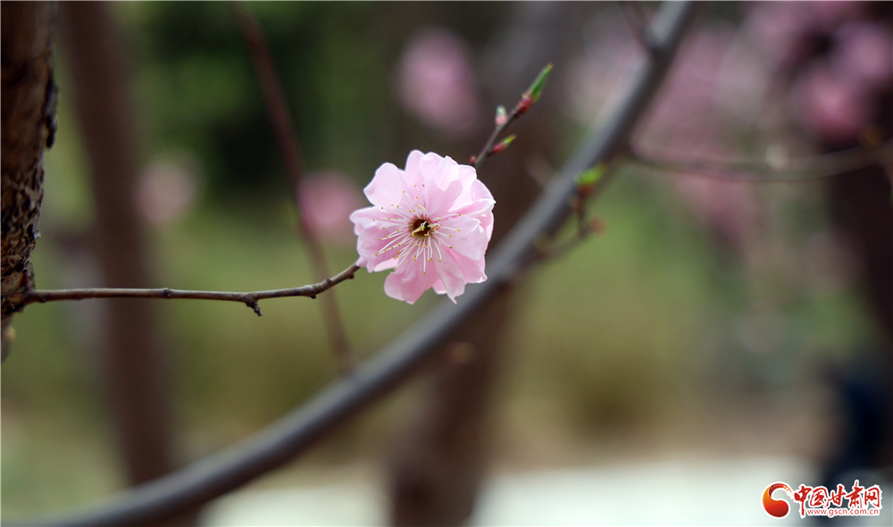 一枝粉花悄然綻放,層層花瓣嬌嫩柔美,花蕊間蜜蜂穿梭采蜜,盡顯春日生機(jī)。淺粉的花朵在枝頭搖曳,將春日的溫柔與靈動(dòng)定格,成為市民鏡頭里最美的春日印記。