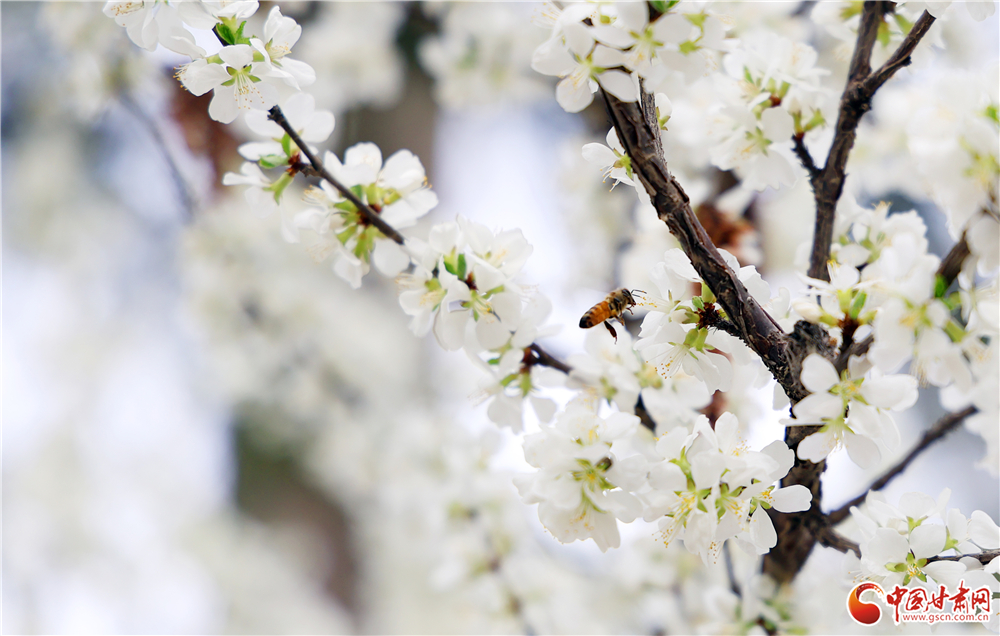 一只蜜蜂停駐花間,振翅采蜜,在純白的花海中增添了靈動(dòng)生機(jī)。各類(lèi)春花次第開(kāi)放,白的素雅、粉的嬌嫩、紅的熱烈,為市民獻(xiàn)上一場(chǎng)春日視覺(jué)盛宴。