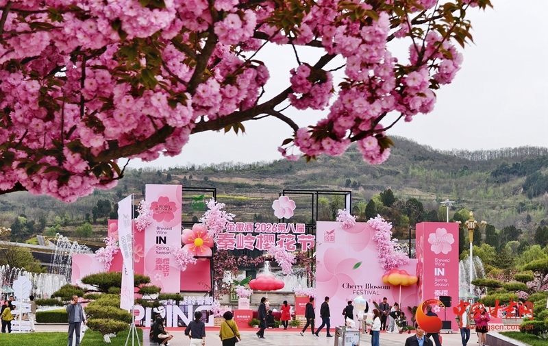 圖為2026第八屆金徽酒秦嶺櫻花節(jié)現(xiàn)場。