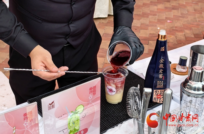 活動(dòng)現(xiàn)場,各類互動(dòng)體驗(yàn)精彩紛呈。霓裳櫻影漢服秀與花神巡游成為流動(dòng)風(fēng)景線;DIY調(diào)酒區(qū)人氣高漲,游客親手調(diào)制櫻花主題金徽特調(diào);非遺工藝展示臺(tái)前,傳承人現(xiàn)場演示古法工序,讓觀眾觸摸“指尖上的匠心”;金徽文創(chuàng)展銷區(qū)人頭攢動(dòng),特色衍生品備受青睞。