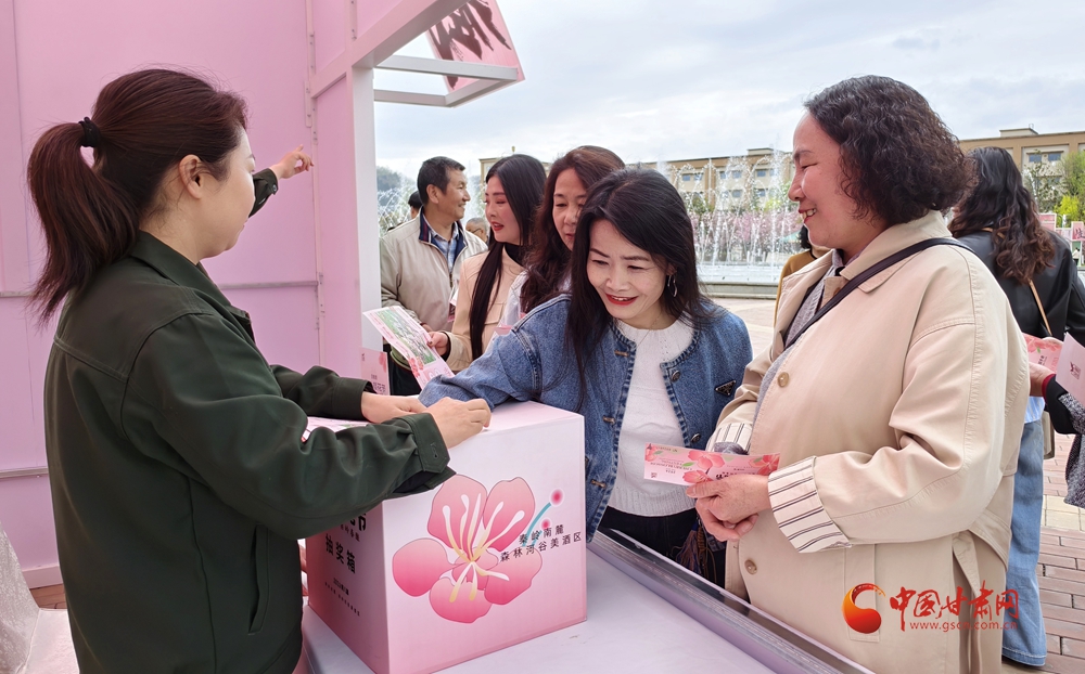 4月11日,在金徽酒文化廣場(chǎng),游客正在參加看花識(shí)酒活動(dòng)。