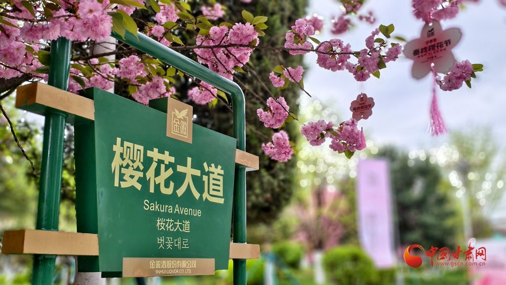 4月10日,在金徽酒文化生態(tài)旅游景區(qū),游客漫步櫻花大道,踏春賞花。