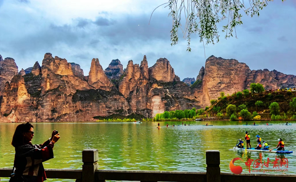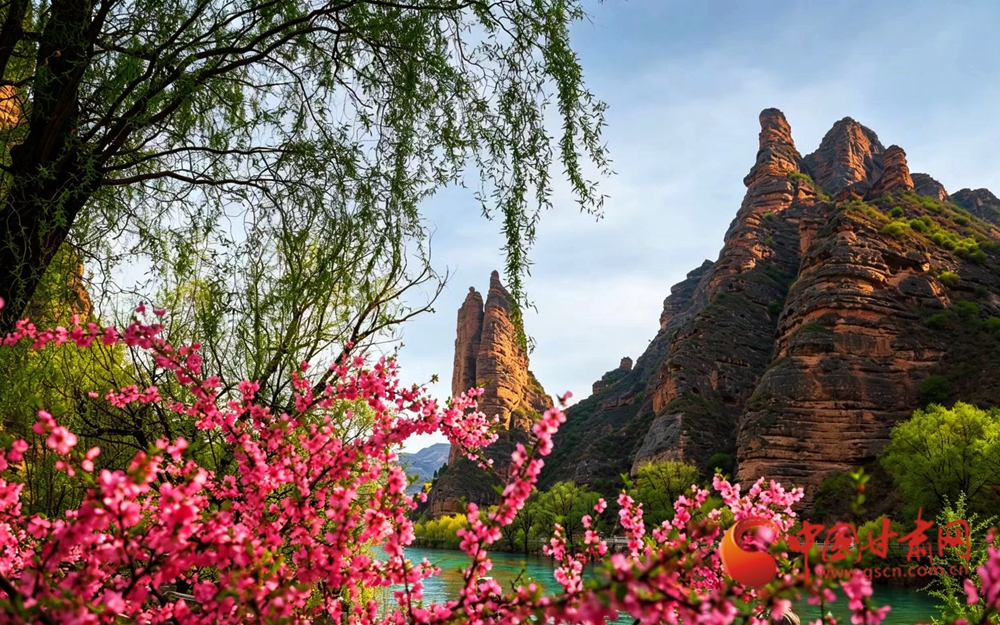 4月12日,永靖縣炳靈湖上,一場(chǎng)跨越千年的春日邂逅正在上演。