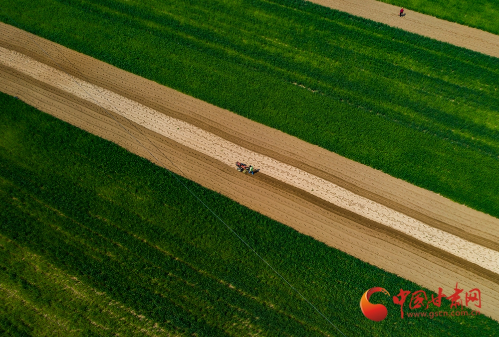 春日,走進定西臨洮的田間地頭,一壟壟覆膜蜿蜒如銀色絲帶,在暖陽下泛起粼粼波光。洮河水畔,杏花初綻,村民們正彎腰點種、培土壓膜。新翻的泥土氣息混著花香彌漫田間。農(nóng)機轟鳴處,白膜與藍天相映,勾勒出黃土高原上最動人的春耕畫卷。