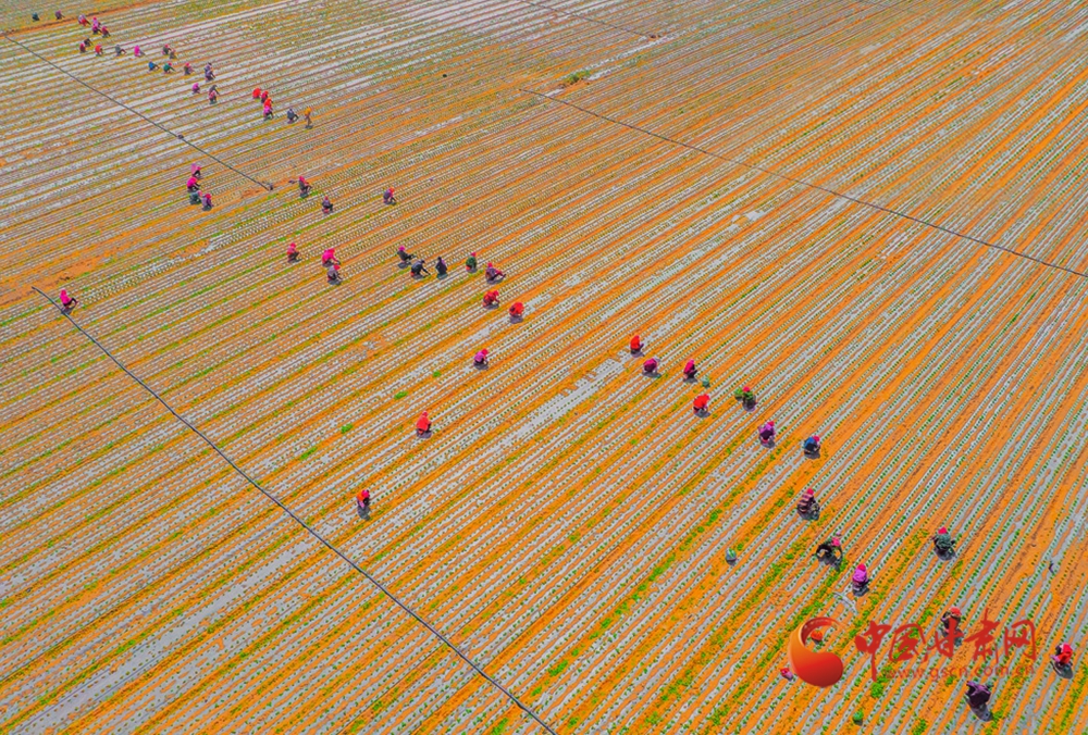 覆著地膜的田壟如大地的脈絡,農(nóng)人們繪就出最動人的田園勞作圖