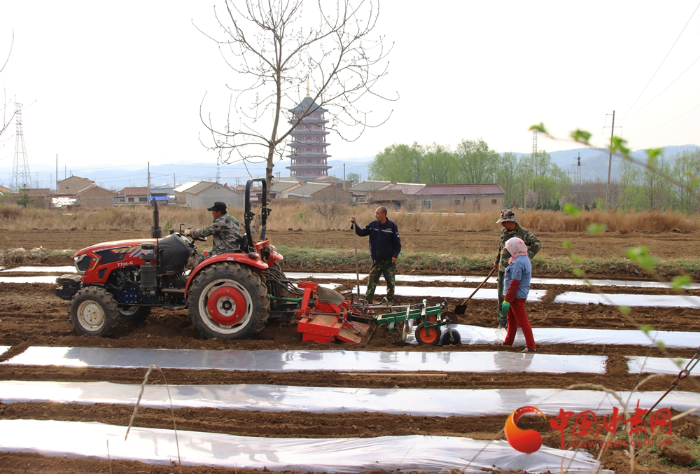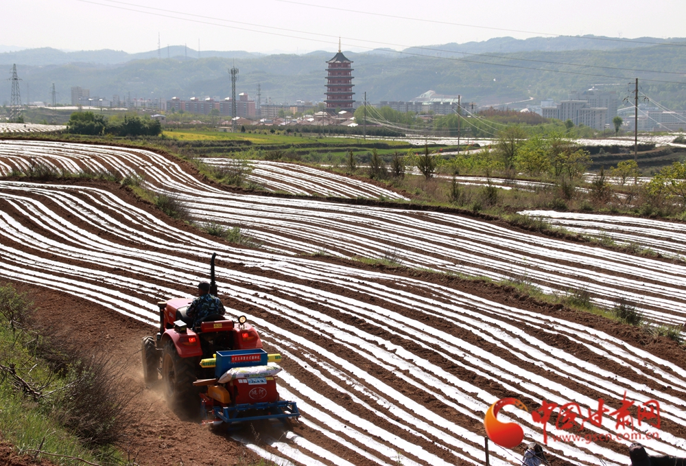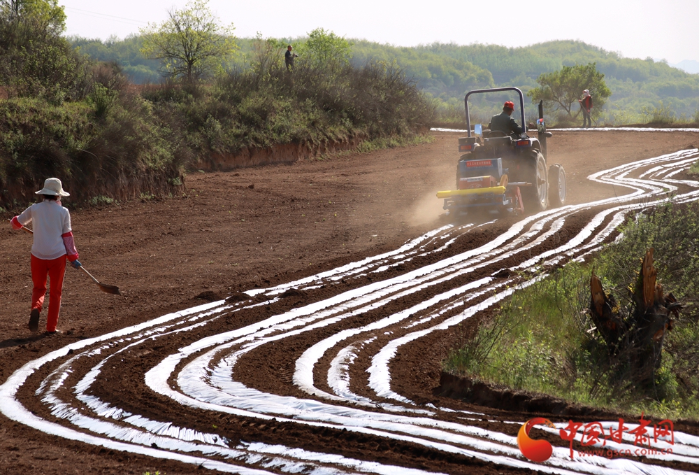 拖拉機在田壟間劃出規(guī)整的覆膜線條,農(nóng)人揮鋤勞作