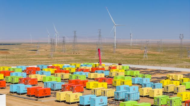 甘肅張掖臨澤板橋羊臺山300MW1200MWh獨(dú)立共享儲能電站。程剛/攝