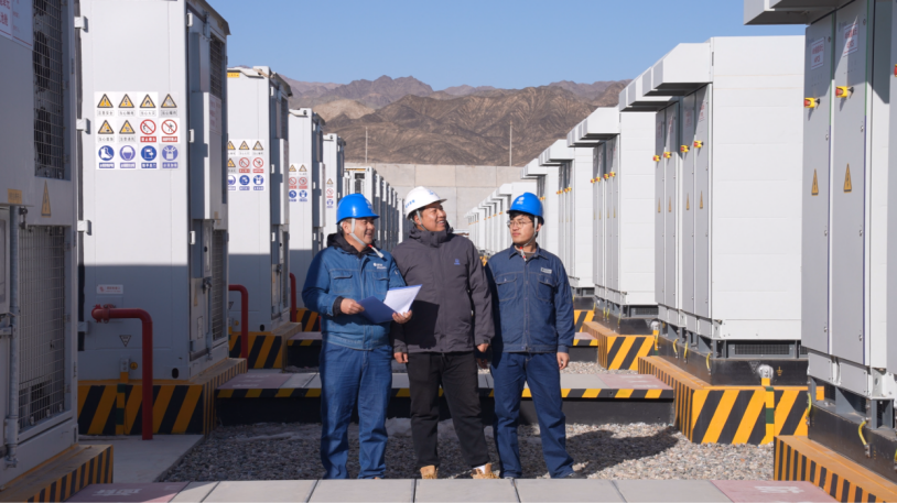 甘肅電力員工在嘉峪關(guān)為全省目前建成并網(wǎng)容量最大的電化學(xué)儲能電站——寧晟500兆瓦1000兆瓦時獨(dú)立儲能電站開展用電上門檢查服務(wù)。姜欣蓉/攝