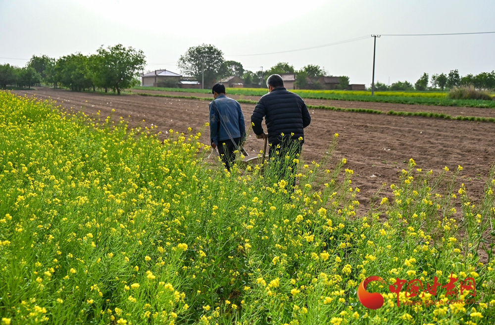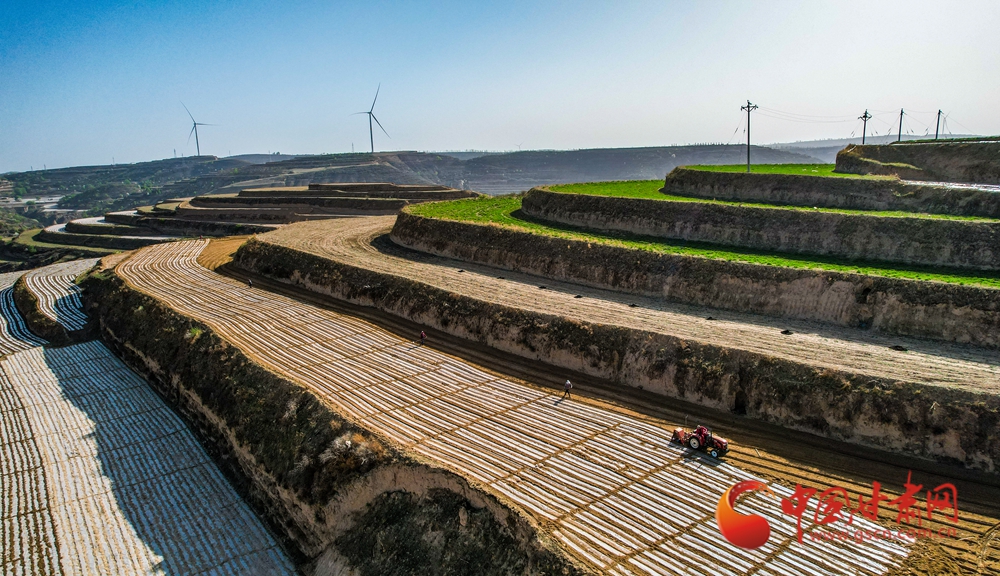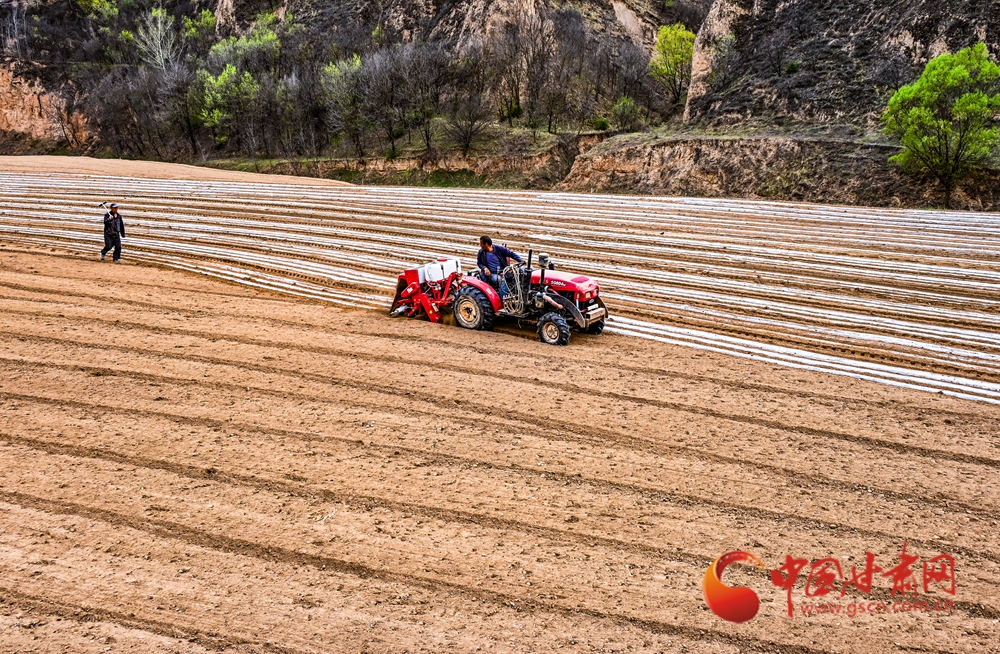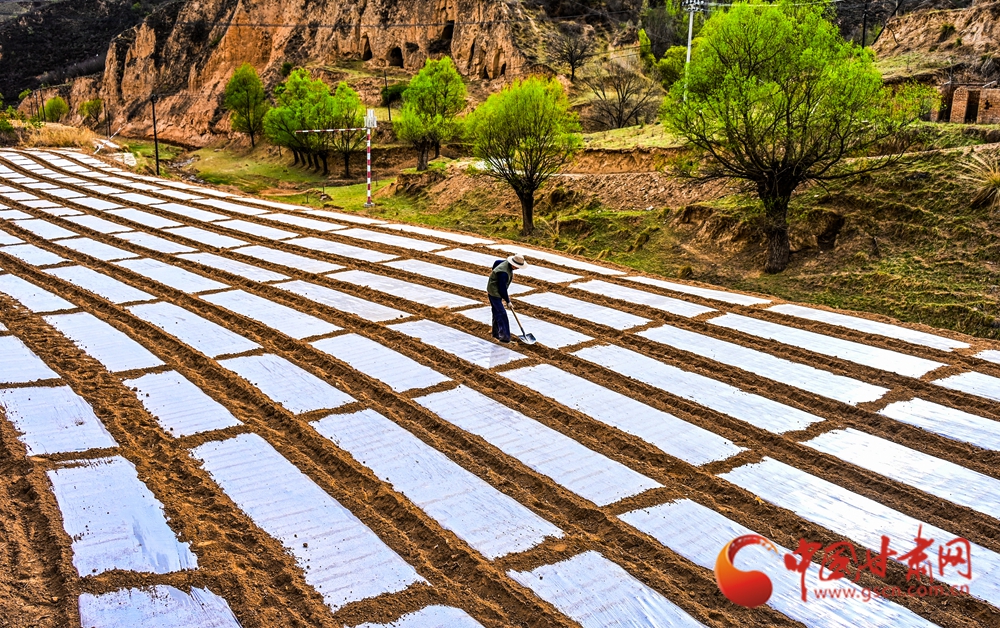 田壟間覆膜如織,農(nóng)人俯身勞作,黃土地上滿是希望的生機