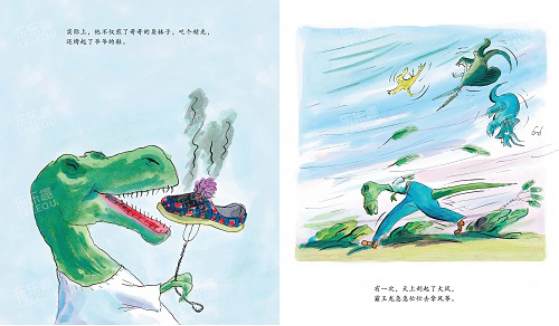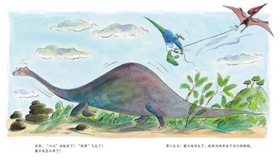 一只可憐的霸王龍弄丟了自己的眼鏡。沒有眼鏡,他分不清馬桶和洗臉盆;沒有眼鏡,他分不清咸魚和臭襪子……直到一個大風天,霸王龍拉著一個“風箏”吃力地爬上了一座“小山”,突然,“小山”站起來了,“風箏”拉著他飛走了。霸王龍會遇到危險嗎?他能平安地回來嗎?