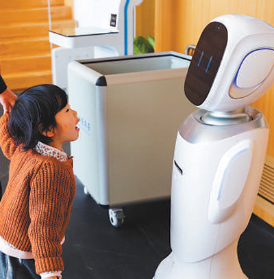 小讀者與館內(nèi)的機(jī)器人交流。闕明芬 攝(人民視覺(jué))