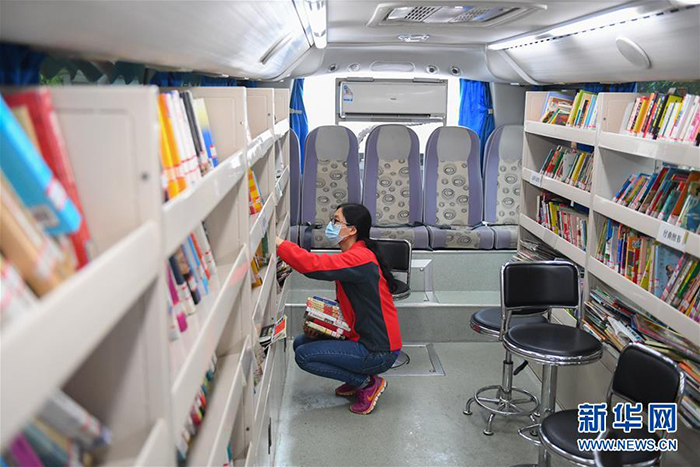 3月26日,在長(zhǎng)沙岳麓區(qū)石嶺塘社區(qū),市民在流動(dòng)圖書(shū)館里挑選書(shū)籍。 近日,在做好疫情防控工作的同時(shí),長(zhǎng)沙流動(dòng)圖書(shū)館恢復(fù)運(yùn)營(yíng)。長(zhǎng)沙流動(dòng)圖書(shū)館是長(zhǎng)沙圖書(shū)館的總分館流動(dòng)服務(wù)項(xiàng)目之一,以大巴車為載體,每月定期到社區(qū)、學(xué)校、企業(yè)、工地等區(qū)域,為市民提供閱覽、咨詢、辦證、借書(shū)、還書(shū)等便捷化公共服務(wù)。 新華社記者 陳澤國(guó) 攝