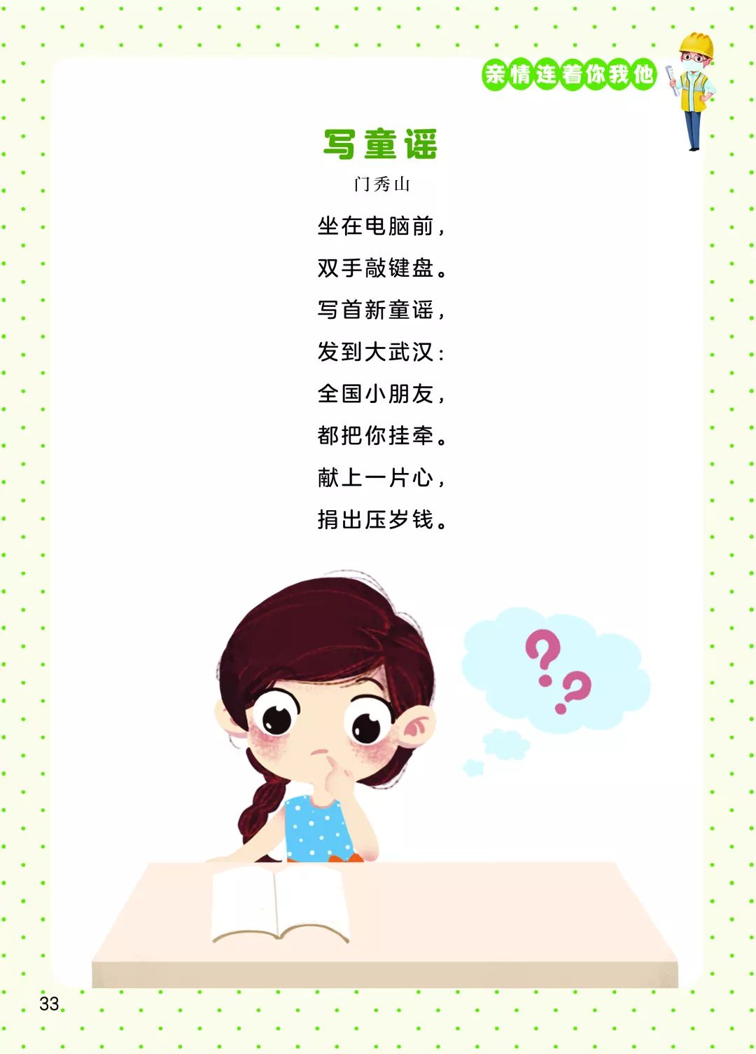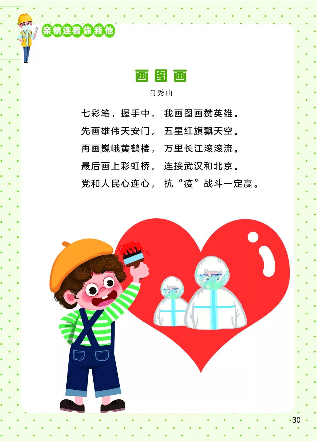 新冠肺炎疫情爆發(fā)以來,全國人民積極投入到疫情防控阻擊戰(zhàn)中,孩子們、兒童文學(xué)作家也紛紛發(fā)聲,創(chuàng)作了大量優(yōu)秀的童謠。每一首童謠是一聲鼓勁的吶喊,匯集起來就是嘹亮的戰(zhàn)歌;每一首童謠點亮一束希望的光,光束匯聚就是光明的未來。