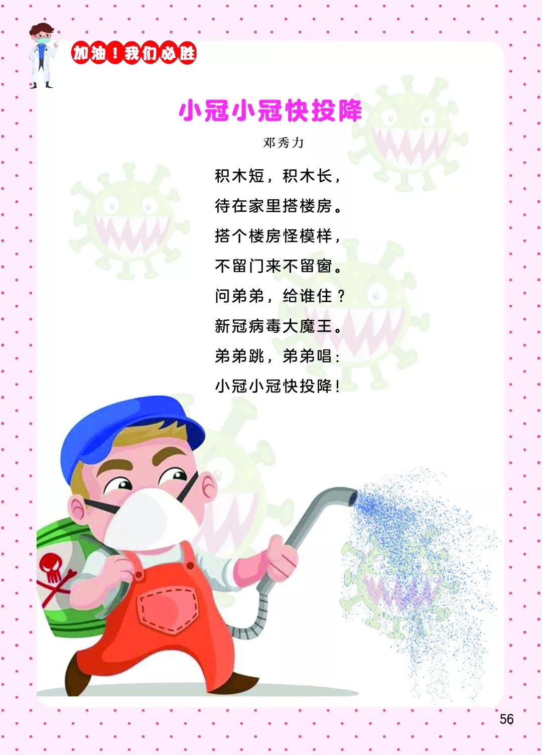 以下為《投降吧,新冠病毒——2020戰(zhàn)“疫”童謠60首》一書全部內(nèi)容: