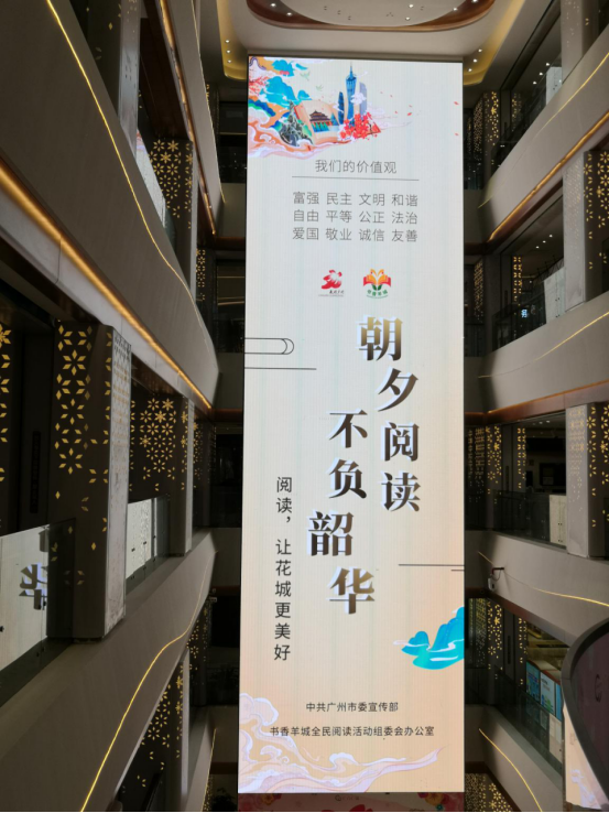 2020廣州讀書(shū)月以“朝夕閱讀不負(fù)韶華”為主題,廣州塔、花城廣場(chǎng)、北京路、流花展貿(mào)中心、廣州圖書(shū)館、廣州購(gòu)書(shū)中心、廣州各大新華書(shū)店、廣州地鐵、廣州報(bào)刊亭等場(chǎng)所,紛紛以亮燈或張貼主題海報(bào)的形式,營(yíng)造濃厚的閱讀氛圍,讓閱讀力量無(wú)處不在、溫暖人心、提振信心。