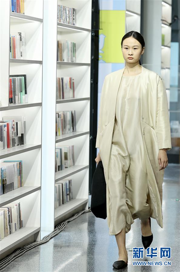 5月5日,模特在北京坊Pageone書(shū)店舉行的中國(guó)國(guó)際時(shí)裝周(2020/2021秋冬系列)“Beauté Comme Toi·姜月&CLEANFLOW·陳文熙”時(shí)裝秀上展示時(shí)裝。 新華社記者 陳建力 攝