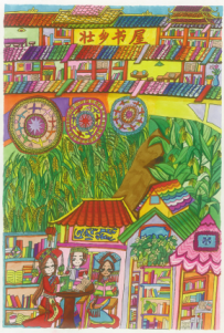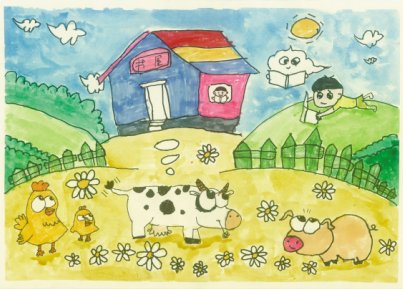 面對(duì)這部由中國(guó)少年兒童新聞出版總社出版的《“我的書(shū)屋·我的夢(mèng)”——2019年農(nóng)村少年兒童閱讀實(shí)踐活動(dòng)優(yōu)秀作品集》,讓人欣喜的是,它不但有文字,還有很多入選的畫作,孩子們運(yùn)用了大膽的色彩、大膽的想象、大膽的線條,恣肆地描繪著他們的夢(mèng)和憧憬,這些夢(mèng)根植于他們生活的山鄉(xiāng)曠野,又呼應(yīng)著遠(yuǎn)方、星辰與大海。我尤其記得其中的一幅,那是一座高聳的書(shū)塔,那種拔地而起、直上云霄的氣勢(shì),是一種象征,是一種隱喻,是這一代孩子想站到巨人肩上的渴望,是他們對(duì)祖國(guó)明天最美好的祝福和期待,也是中華民族必將走向復(fù)興的昭示。