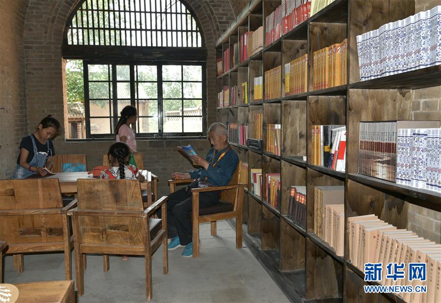 老苗書館就是在其中一處窯洞上修建而成。“這個院子共有8口窯洞組成,一百多年前由一戶苗姓人家修建,所以取名老苗書館。”51歲的苗樹生是書館的第一任館長,也是建設(shè)者之一。“我們是24小時開放,村民可以把書拿回家,還可以把家里的書拿來換著看,整個書館藏書5萬多冊,很多都是黨員干部和志愿者捐來的。”苗樹生說。