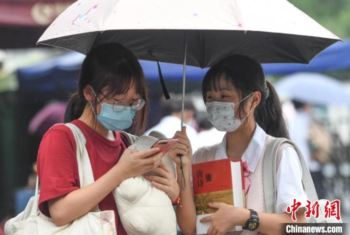 浙江高考結(jié)束首日,在杭州學軍中學門口,考生抱著復習資料準備回家?!⊥鮿偂z