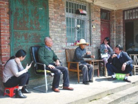 劉道云(右一)為寫作《第一書記:精準(zhǔn)扶貧的“一線戰(zhàn)斗員”》,深入基層一線傾聽群眾心聲。