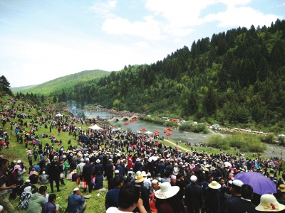 花兒是山歌的一種,亦叫“山曲”“少年”“野曲”,適合田間地頭勞作中演唱的小曲。它誕生于一千七百多年的西晉永嘉末年,其祖源《阿于歌》,由鮮卑族慕容部創(chuàng)作,傳至隴上今甘肅岷縣一帶的吐谷渾部落,被廣泛傳唱。岷州二郎山五月十七花兒會(huì)最早源于岷縣的祭神賽會(huì),據(jù)考證其形成時(shí)間為明代,參與民眾達(dá)十萬(wàn)余人,是國(guó)家級(jí)非遺項(xiàng)目。此刻的二郎山成了花兒的世界,人的海洋,從山腳至山頂歌子海潮般涌動(dòng)著,來自岷州各地的民間歌手五個(gè)一伙,十個(gè)一群,對(duì)歌賽花兒。置身于情歌的海洋,你會(huì)不由自主還原到最初的自己,放開喉嚨高歌一曲,熱辣的歌聲仿佛冬日的暖陽(yáng),喚醒沉睡的情感,被花兒撫慰過的心靈柔軟豐盈。