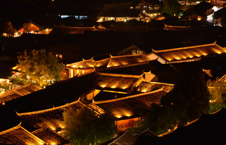 黃昏時,主人再去打水澆花時,我又回到了穿城而過的水流之中。這時,古城五彩的燈光把渠水輝映得五彩斑斕。游客聚集的茶樓酒吧中,傳來人們的歡笑與歌唱。這些人在自己所來的遠處地方,即便是寂靜時分,內(nèi)心也很喧嘩。在這里,盡情歡歌處,夜涼如水,他們的心像一滴水一樣晶瑩。