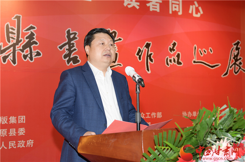 劉永升在致辭中說,鎮(zhèn)原是中國書法之鄉(xiāng),讀者是甘肅文化名片,企縣因扶貧而結(jié)緣,因文化而牽手。自2017年定點幫扶鎮(zhèn)原以來,讀者出版集團(tuán)著力實施了一批“看得見、摸得著、留得下、有成效”的好項目,探索出一條富有“讀者”特色的幫扶路子。特別是立足文化企業(yè)定位,堅持扶智扶志,通過開展勞動技能培訓(xùn)、幫助改善教育條件、推介宣傳地方資源、建設(shè)“讀者鄉(xiāng)村文化驛站”等一系列卓有成效的工作,切實打好“文化扶貧”牌,既堅定了廣大群眾戰(zhàn)勝貧困的信心和決心,更激發(fā)了貧困群眾依靠雙手、勤勞致富的積極性、主動性。此次與鎮(zhèn)原縣聯(lián)合舉辦書畫巡展,是開展文化扶貧、助力書香社會建設(shè)的務(wù)實之舉,也是提升“文化鎮(zhèn)原”影響力、加快地方文化產(chǎn)業(yè)發(fā)展的積極行動,更是提高貧困群眾文化素質(zhì)、振奮群眾精神風(fēng)貌的重要舉措。