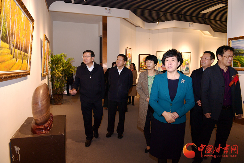 省委宣傳部、省文明辦、省直機(jī)關(guān)工委、省國資委、省文旅廳、省文史館、省文聯(lián)、省扶貧辦、省人社廳和定點幫扶鎮(zhèn)原的讀者出版集團(tuán)等省直部門負(fù)責(zé)人,鎮(zhèn)原縣委副書記張笑陽,縣委常委、宣傳部長賈翠艷,知名書畫家、慶陽籍在蘭各界人士共計600余人參觀展覽。