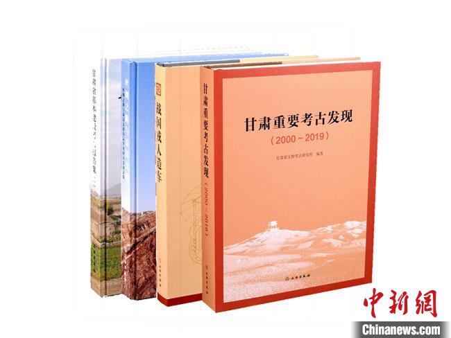 圖為由甘肅省文物考古研究所編著的《甘肅重要考古發(fā)現(xiàn)(2000~2019)》《甘肅省基本建設(shè)考古報(bào)告集(一)》《絲綢之路與秦漢文明——絲綢之路與秦漢文明國(guó)際學(xué)術(shù)研討會(huì)文集》《戰(zhàn)國(guó)戎人造車》四部考古著作。甘肅省文物考古研究所供圖