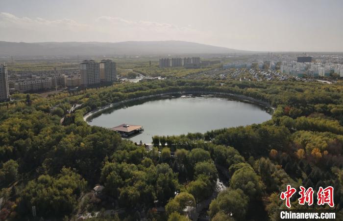 2020年7月,俯瞰甘肅嘉峪關(guān)東湖生態(tài)旅游景區(qū),該景區(qū)是國(guó)家級(jí)4A旅游風(fēng)景區(qū),滿眼綠意惹人醉。(資料圖) 丁思 攝