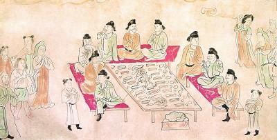 郊野聚飲圖 選自陜西旅游出版社1996年出版的《大唐壁畫》