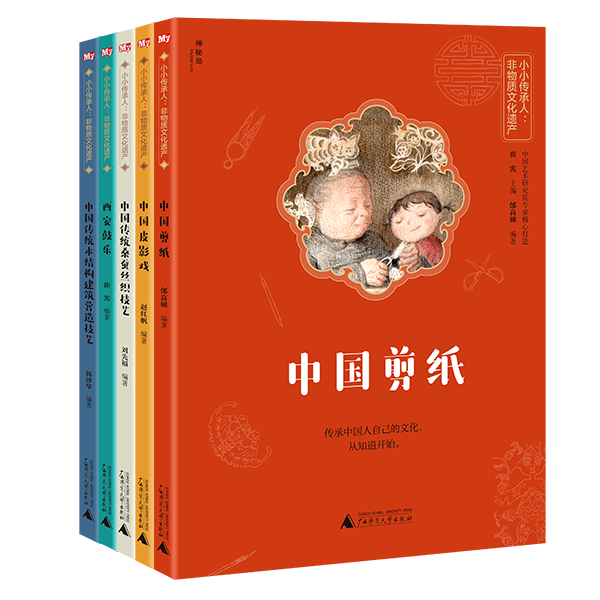 奶奶炕頭的窗花,皮影勾勒的世界,吳儂軟語縈繞的絲綢,故宮雄偉的大殿,穿越千年的鼓韻……“小小傳承人:非物質(zhì)文化遺產(chǎn)”系列傳統(tǒng)文化讀本日前推出第一輯,包括《中國剪紙》《中國皮影戲》《中國傳統(tǒng)桑蠶絲織技藝》《西安鼓樂》《中國傳統(tǒng)木結構建筑營造技藝》五本。