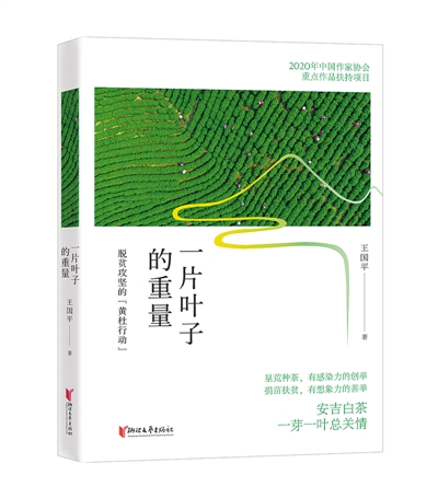 王國(guó)平報(bào)告文學(xué)《一片葉子的重量——脫貧攻堅(jiān)的“黃杜行動(dòng)”》寫的黃杜村,位于浙江省湖州市安吉縣,那里曾經(jīng)是個(gè)貧困山村。“一片葉子富了一方百姓”,在擺脫貧困的道路上,村民們艱苦奮斗,使黃杜村成為安吉白茶的重要產(chǎn)地,家鄉(xiāng)面貌煥然一新。