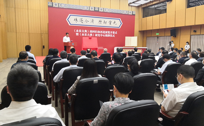 5月31日下午,“珠還合浦 歷劫重光——《永樂大典》的回歸和再造”展覽開幕式暨《永樂大典》研究中心揭牌儀式在國(guó)家圖書館舉行。