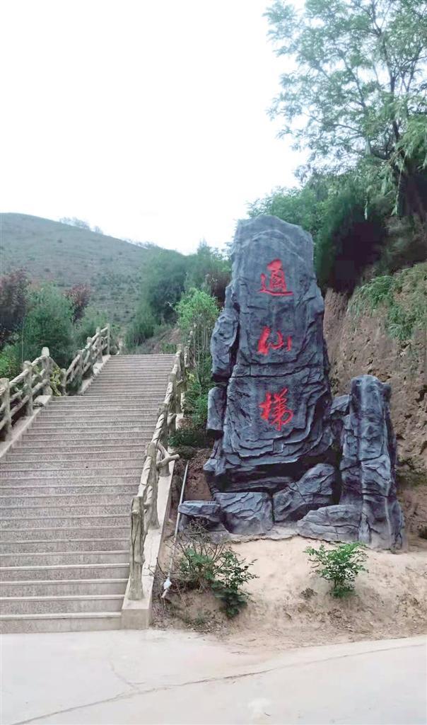 一條羊腸小道蜿蜒了千年,承載了無數(shù)游覽者匆匆的步履,在人們無數(shù)次的暢想中,化成了一條金光大道,讓老人、孩童和物資可直達(dá)寺窟門外。醒目的“通仙梯”石刻指引人們沿著游步道拾級(jí)而上,領(lǐng)略綠樹掩映、曲徑通幽的絕好勝景,金黃的葉子在濃密的綠葉間格外鮮亮,松樹和柏樹你擠著我,我挨著你,密密匝匝,在五月的陽(yáng)光和微風(fēng)中,吟唱著生命的贊歌。白色槐花香氣馥郁,紅色槐花鮮艷奪目,它們從高高的枝頭垂下來,或從山崖斜伸而出,或與游人摩肩而過,或者親呢的撫摸一下游人的笑臉。掩映綠樹中的亭子,是一道絕好的景觀,讓人產(chǎn)生一種遐想和逗留的念想。亭子旁叫不出名的小鳥輕盈的飛舞和歡快的鳴叫,增添了一種活潑美妙的情趣。這情趣給花樹、亭子帶來一種靈性,頻添了無限韻味和妙趣。