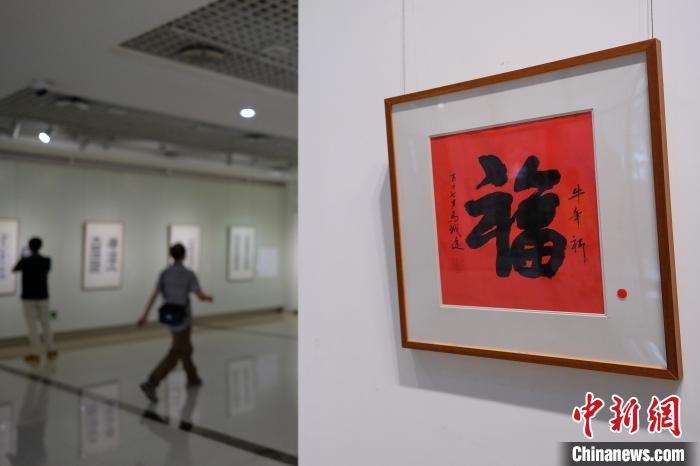 圖為觀眾參觀書法展?!『闻罾?nbsp;攝