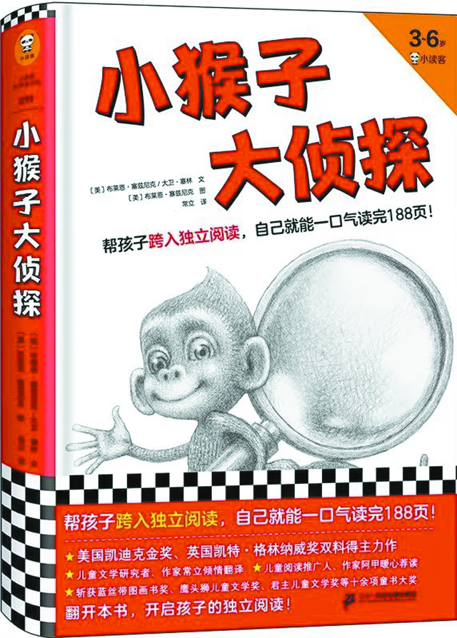 《小猴子大偵探》是本“欺騙性”很強的書,第一次讀到時,我真的被騙到了!聽說是《造夢的雨果》作者的新作,我完全沒理會這本書的介紹,就迫不及待地翻開來。好家伙,共有5章,差不多200頁,我心想,總得一兩個小時才能讀完吧。正當(dāng)我擺開架勢,準(zhǔn)備好好享受童書鬼才塞茲尼克和塞林的新作時,翻著翻著,大概六七分鐘吧,嗯——居然就翻到了最后一頁!天哪,我當(dāng)時想,這是怎樣的一本書??!不對,這真的是一本書嗎?