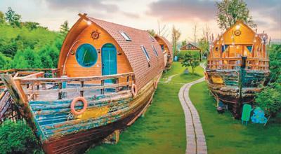 如今的漁村,早已不是灘涂上原始陳舊的民居,而是一幢幢簇新的精品民宿。從海邊的木棧道穿行而過,就能看到這些精美的建筑。北方的海,雖然沒有南國的椰林樹影,沒有巖石層疊起伏,但卻美得大氣而莊嚴(yán)。這些排列整齊的民宿,保留著北方民居質(zhì)樸的樣子,規(guī)整而溫馨地背倚著滔滔海浪。外圍土黃色的籬笆墻被一個個黑褐色的海貝填滿,摸上去還有些硌手,呈現(xiàn)一種粗糲的浪漫。走入民宿內(nèi)部,原木、青石板、大理石地磚等設(shè)計(jì)元素,在安靜明亮的空間里集中在一起,營造出和諧的氣氛。小茶幾上的手繪城市地圖、古董咖啡杯,透露出設(shè)計(jì)師的精巧用心。船錨、貝殼、海螺……這些海洋元素的小擺件一個是一個,生動耐看,時刻提醒著你與海的距離不過一公里。店家介紹,這里適合家庭度假,想著在這樣的民宿里住一宿,再嚴(yán)厲的家長也會重新當(dāng)一回柔軟的孩子吧。