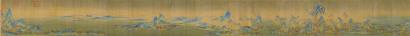 公元1100年19歲趙佶登基,年輕的宋徽宗開啟了屬于他的藝術(shù)新紀(jì)元。在徽宗傾力關(guān)心的翰林圖畫院中聚集了一大批優(yōu)秀的畫家,如李唐、朱銳、張擇端,其中李唐的《江山小景》,張擇端的《清明上河圖》都以手卷的形式描繪了從自然到都市的繁華,這樣的極致華麗是宋代院體山水畫卷的主旋律。最能體現(xiàn)華麗之美的山水卷莫過(guò)于出自當(dāng)時(shí)還未入畫院,但已被徽宗視為“其性可教”并“親授其法”的18歲少年王希孟所繪的《千里江山圖》。此卷縱51.5厘米,橫1191.5厘米,可謂真正的長(zhǎng)卷,所繪千山萬(wàn)壑,峰巒起伏連綿,江河煙波浩渺壯麗,山林間有人物、飛泉、房舍、樓臺(tái)、林木、花竹、漁舟、游船,遠(yuǎn)處島嶼相疊,汀渚綿延,水天相接,好一個(gè)理想中華麗光明的太平世界。山水是宇宙之大物,人在山林丘壑間游歷是見不到山水之全貌的。山水畫要將千里之景容納咫尺絹素,唯手卷的形制才得以在有限之內(nèi)展示無(wú)限的浩瀚。