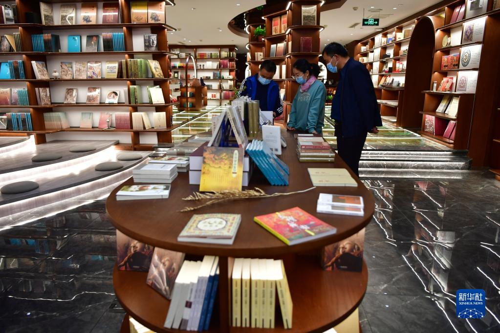讀者在敦煌書局挑選書籍(4月21日攝)。新華社記者 杜哲宇 攝