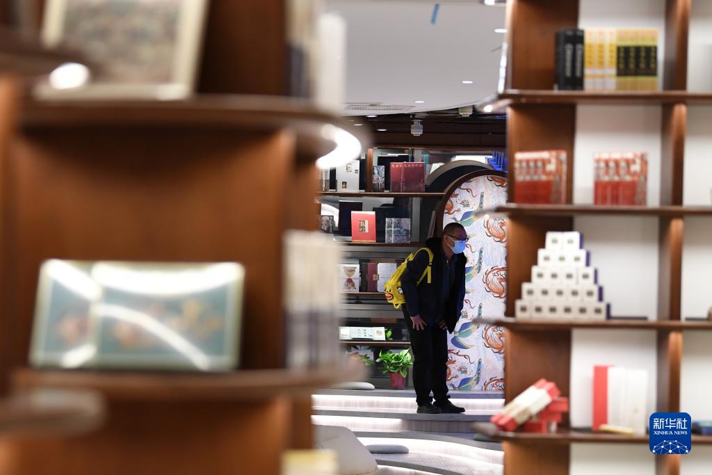 讀者從敦煌書局的書架旁走過(guò)(4月21日攝)。新華社記者 陳斌 攝
