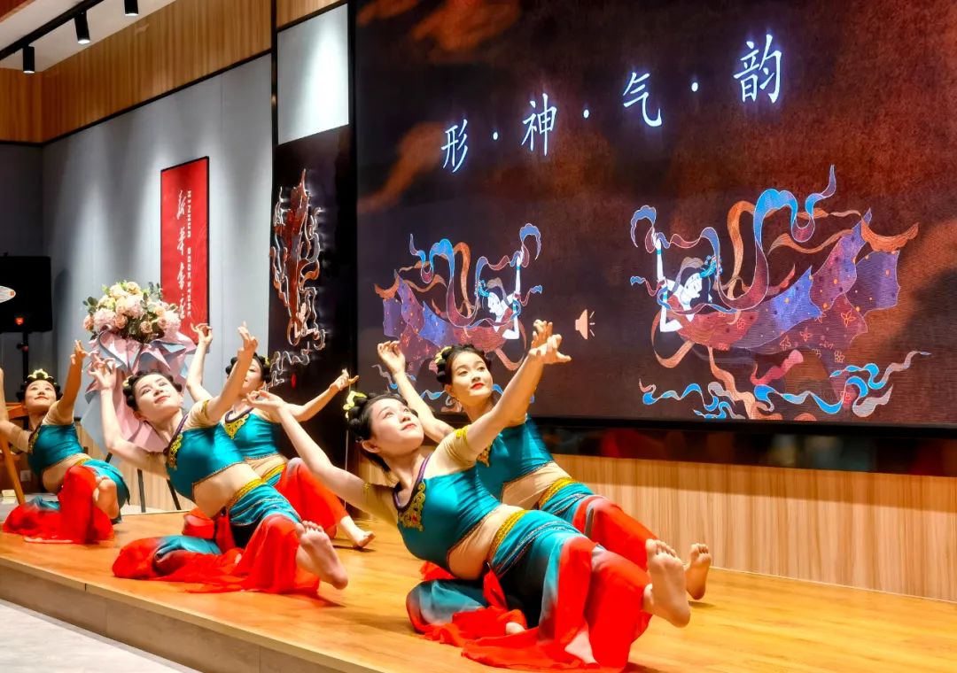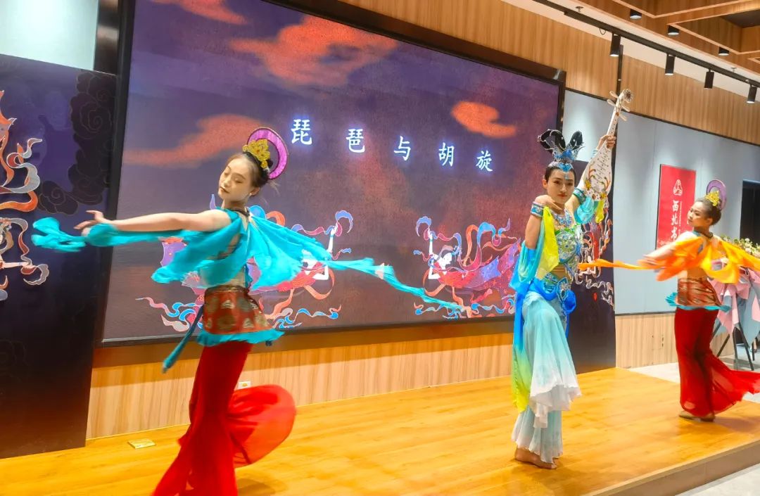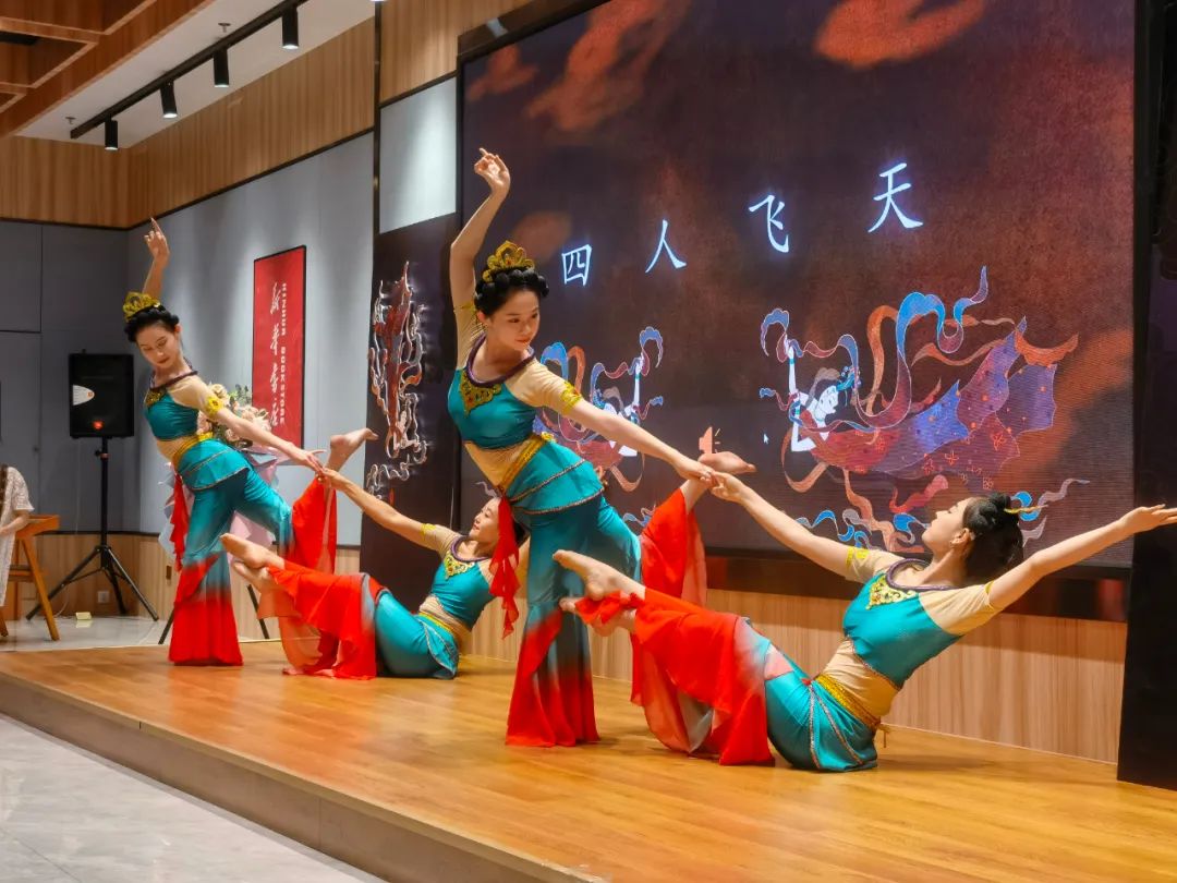 見面會現(xiàn)場,作者介紹了本書創(chuàng)作歷程,并通過“形、神、氣、韻”“抻、曲”“舞姿控制”“四臂觀音”“四人飛天”“胡旋與琵琶”等組合精彩紛呈的表演,使讀者更加直觀地了解本書的主要內(nèi)容和敦煌舞蹈的文化內(nèi)涵,感受敦煌舞蹈傳遞出的藝術(shù)價(jià)值、文化素養(yǎng)和無窮的魅力。